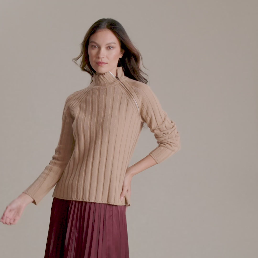 Talia Rib Zip Raglan Turtleneck